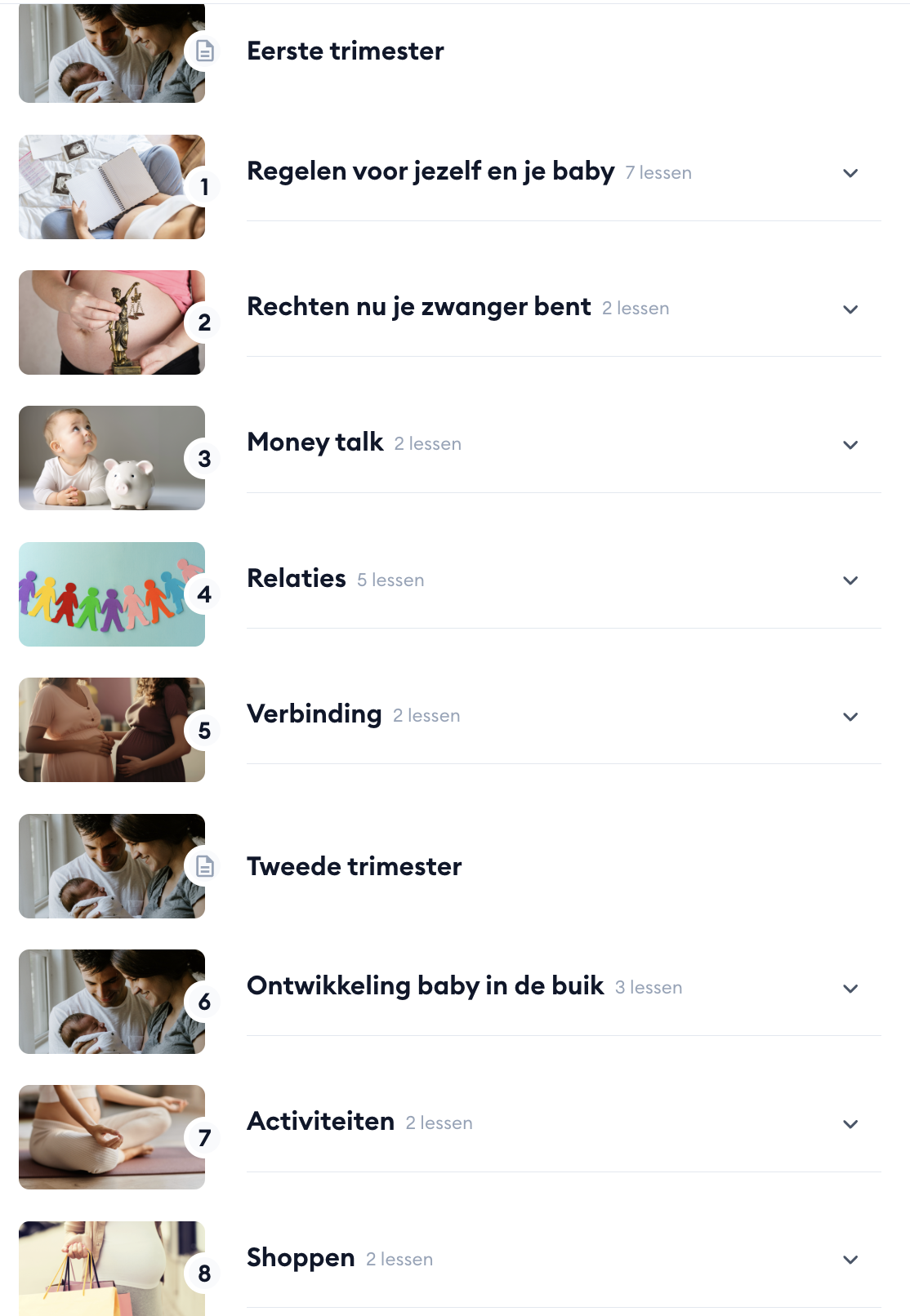 De cursus is opgebouwd per fase van de zwangerschap.